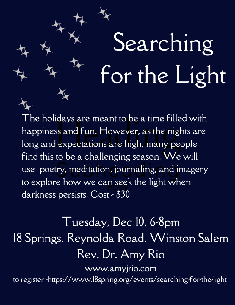 I hope you will join me for an upcoming class, Searching for the Light (details below)…